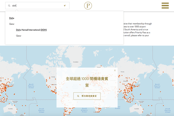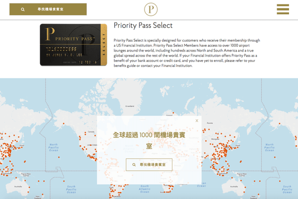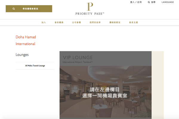 查詢全球貴賓室網站: https://www.prioritypass.com/zh-TW/Select